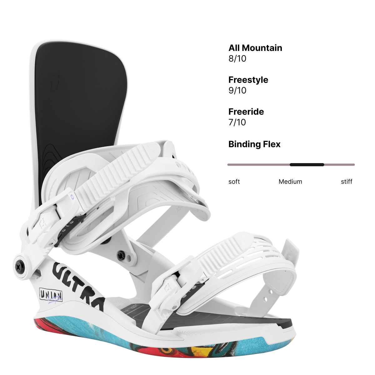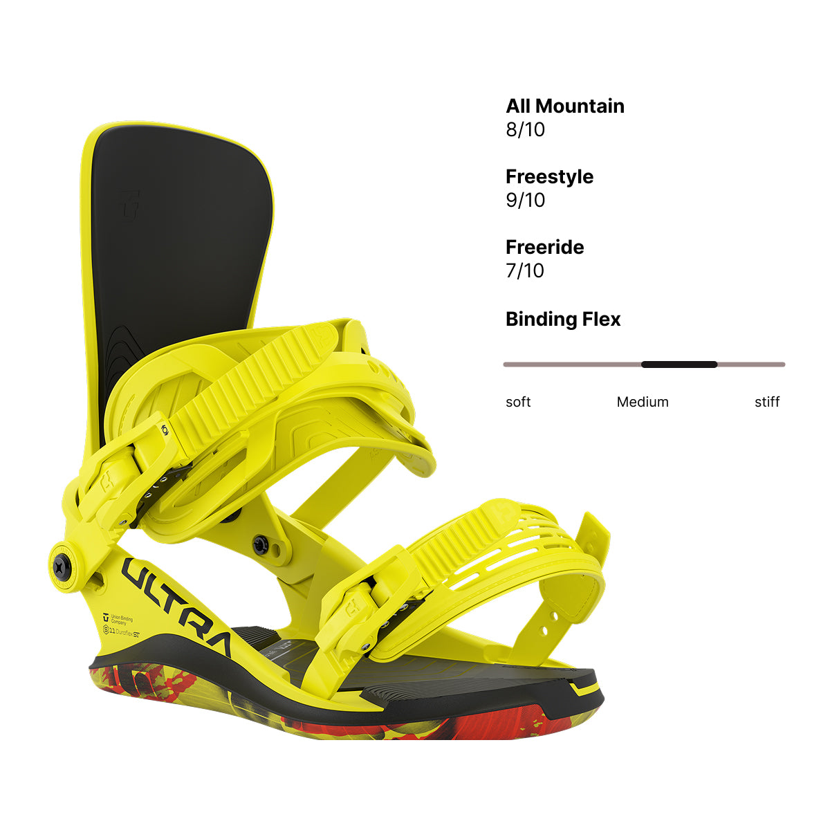 Schnall dich an für die bequemste Snowboard-Bindung, die je entwickelt wurde. Das Union Ultra bietet ein flexibles und gedämpftes Fahrgefühl, wie du es noch nie zuvor erlebt hast. Jede Komponente des Ultra fungiert als ein Federungssystem für deine Snowboard-Boots, das sich bei jeder Bewegung auflädt und entlädt, während du fährst. Willkommen in der Zukunft des Snowboard-Bindungsdesigns.