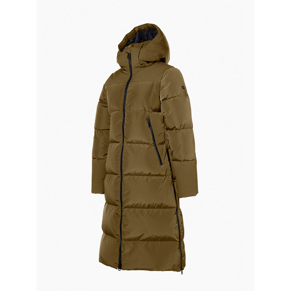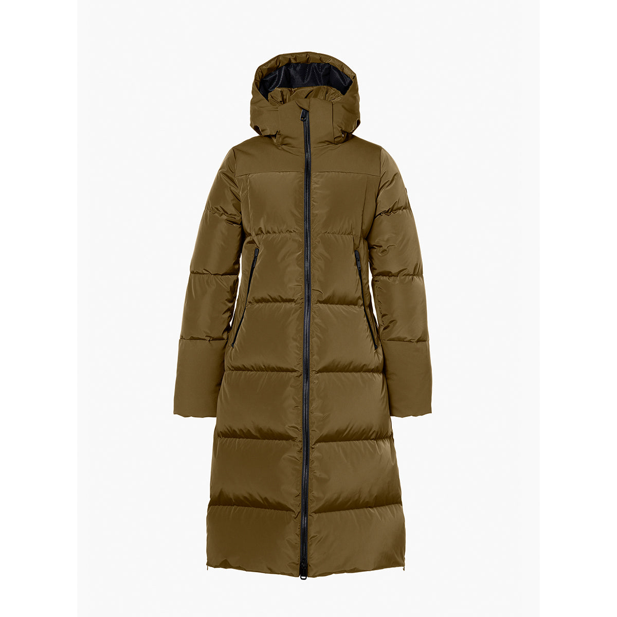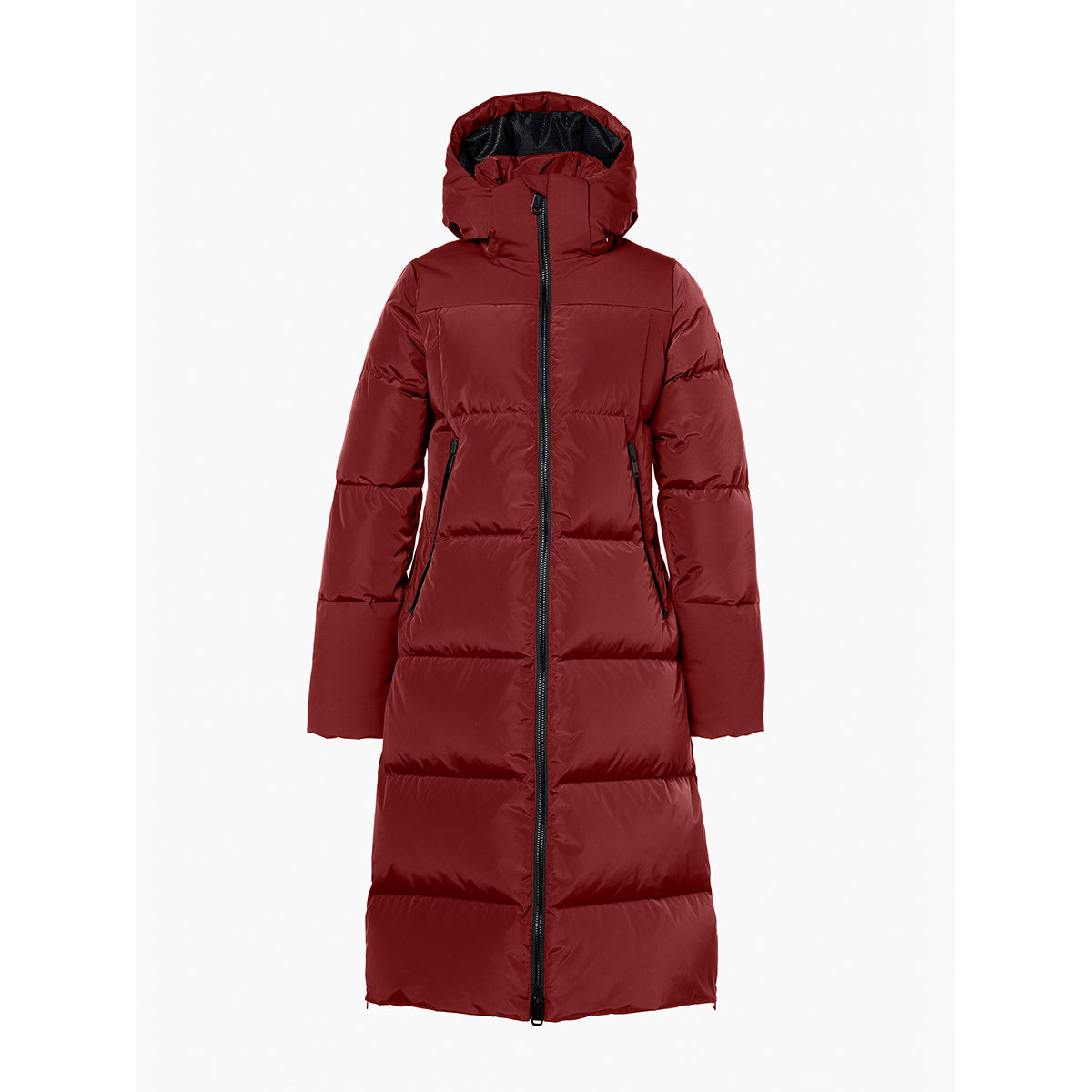 Lange Daunenjacke mit Kapuze