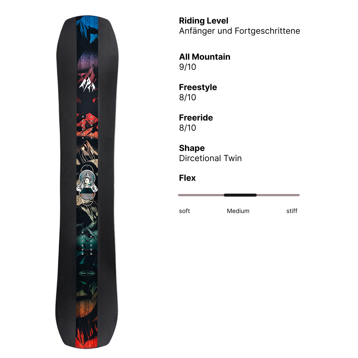 Vielseitiges und leistungsfähiges Directional Twin, das für Fahrer entwickelt wurde, die ein verspieltes All-Mountain-Board suchen, das in jedem Schneezustand überzeugt.