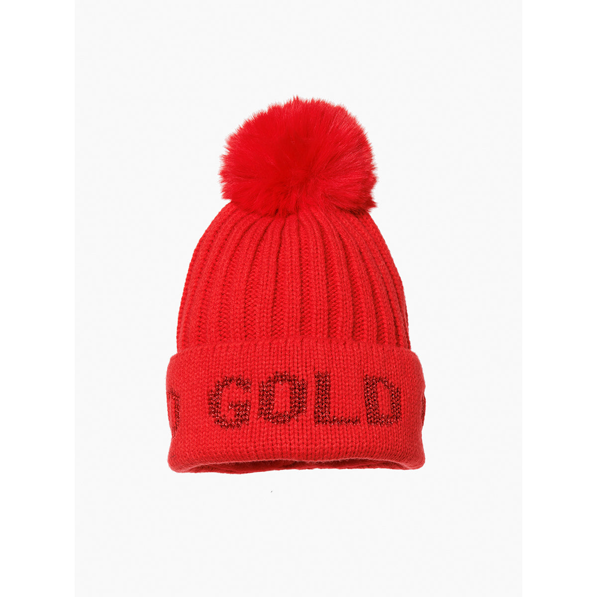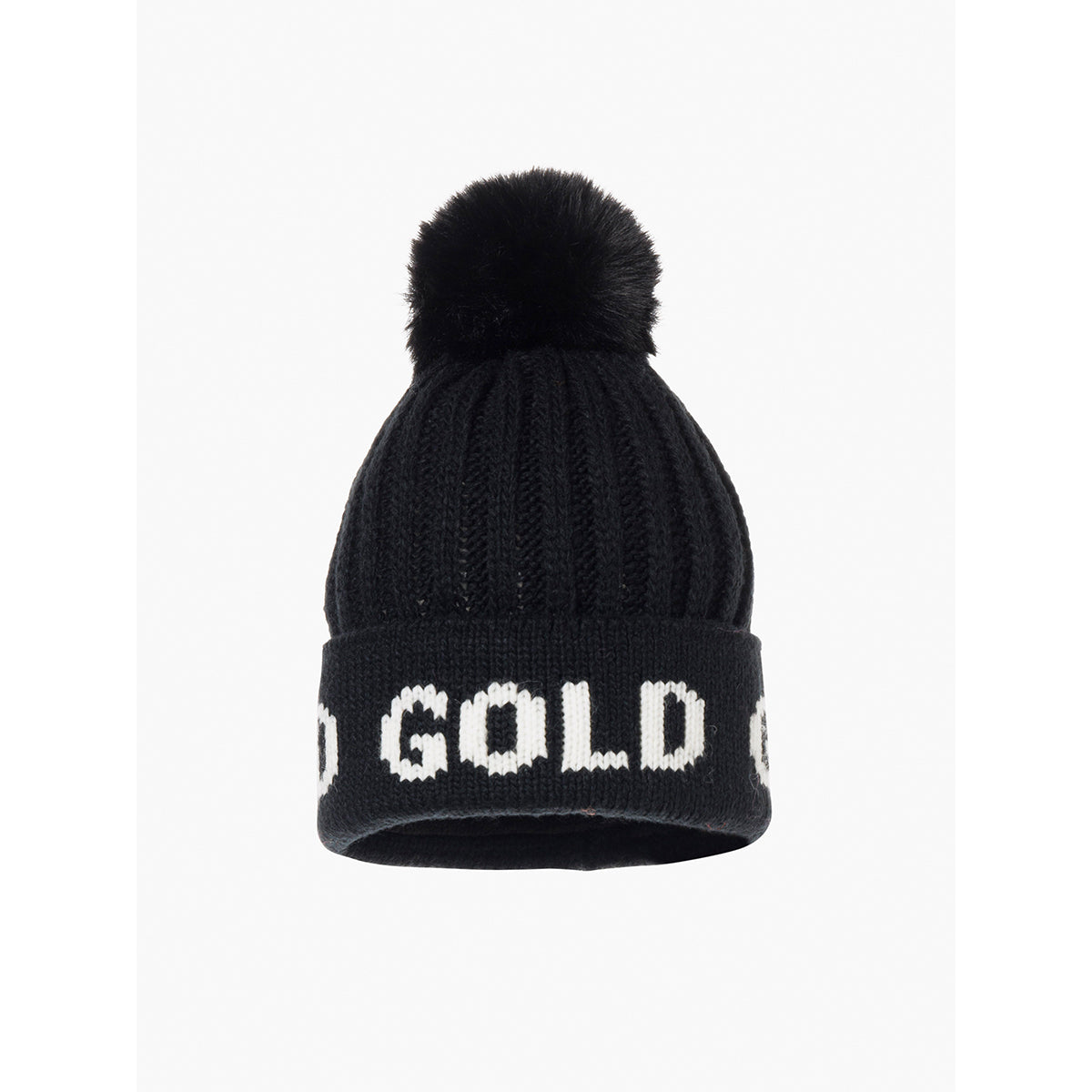 GOLD-Schriftzug in Jacquard-Strick auf dem