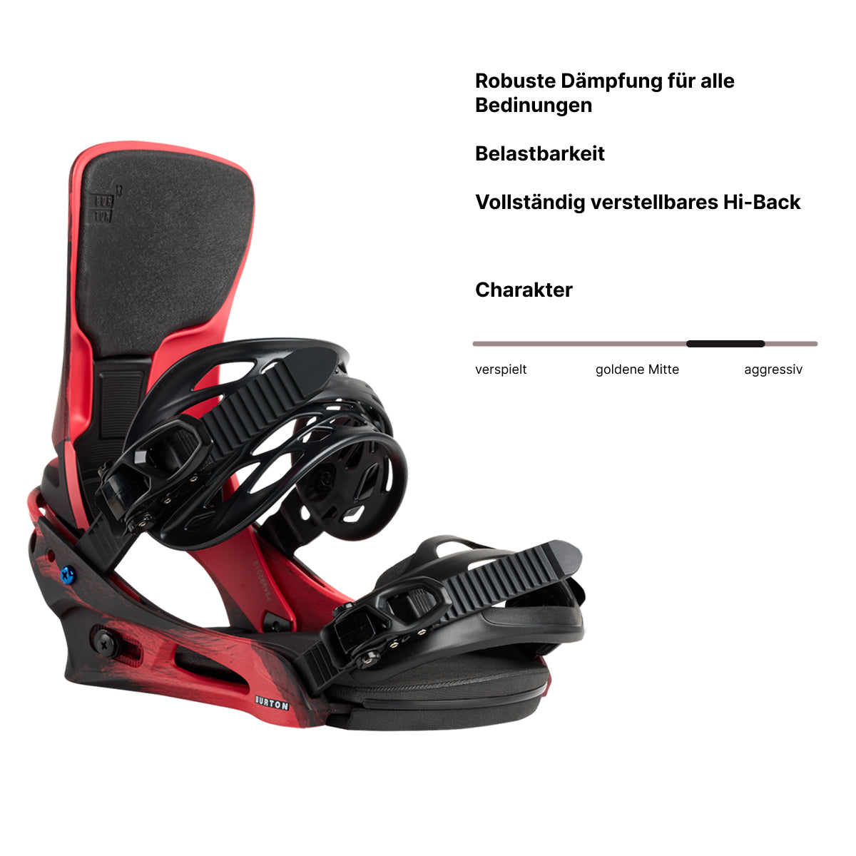 Leicht, vielseitig, reaktionsstark. Eine legendäre Mischung aus Komfort und Vielseitigkeit für jedes Gelände in neuer Ausführung mit noch geringerem Gewicht und mehr Response. Die Burton Cartel X Re:Flex Snowboardbindung ist eine robuste Bindung auf Profi-Niveau. Vom reaktionsfreudigen Hi-Back und dem Freestyle-orientiertem Zero Forward Lean besitzt die Re:Flex Version jede Menge Performance-Features, mit denen du deine Skills erweitern und länger auf dem Board stehen kannst.