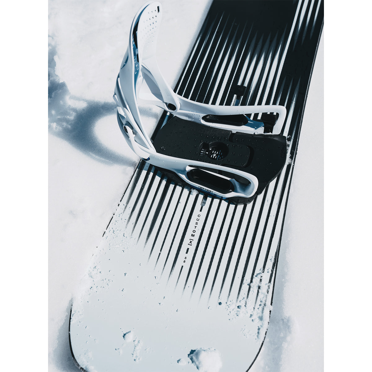 Hard charging precision in a high end, pro-caliber board. Profi-Niveau ist ein starkes Statement für jedes Board, aber das Burton Custom X Snowboard für Herren wird dank seines präzisen Designs und seiner leistungsstarken Dynamik immer wieder den anspruchsvollsten Ridern gerecht. Das widerstandsfähigste Board von Burton. Der carbonbasierte Snap und Twin Flex sorgen für Geschwindigkeit und die Freiheit, jedes Gelände zu erkunden. Der Camber ist für dynamische Turns und poppige Präzision abgestimmt, mit gleichmäßig über das gesamte Board verteiltem Gewicht für gleichmäßige Kantenkontrolle von Tip bis Tail.