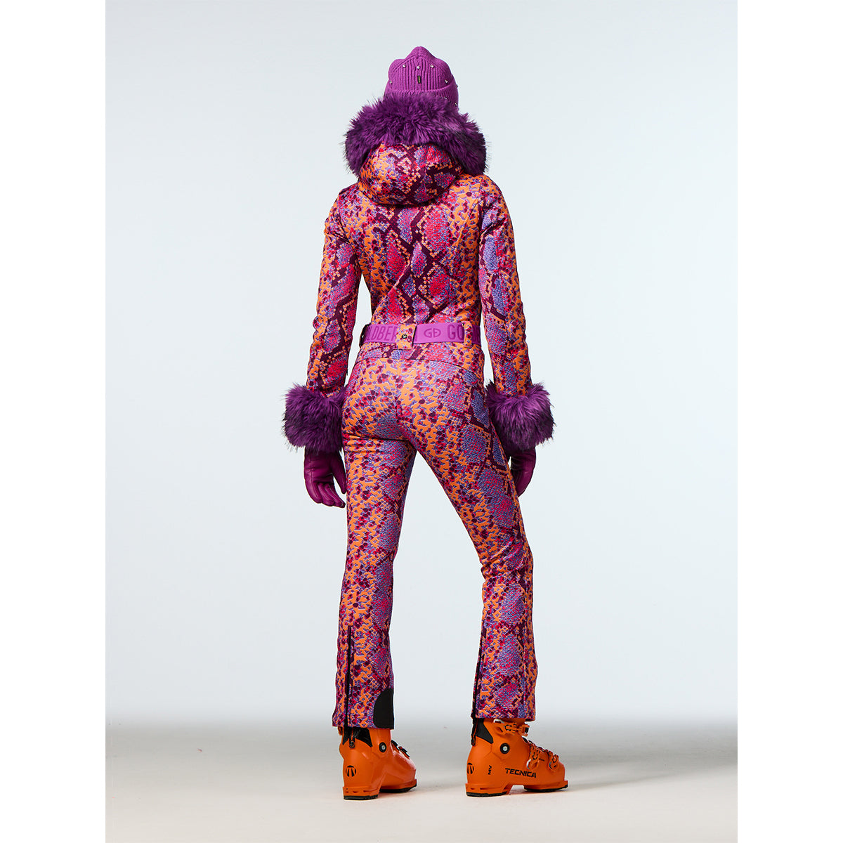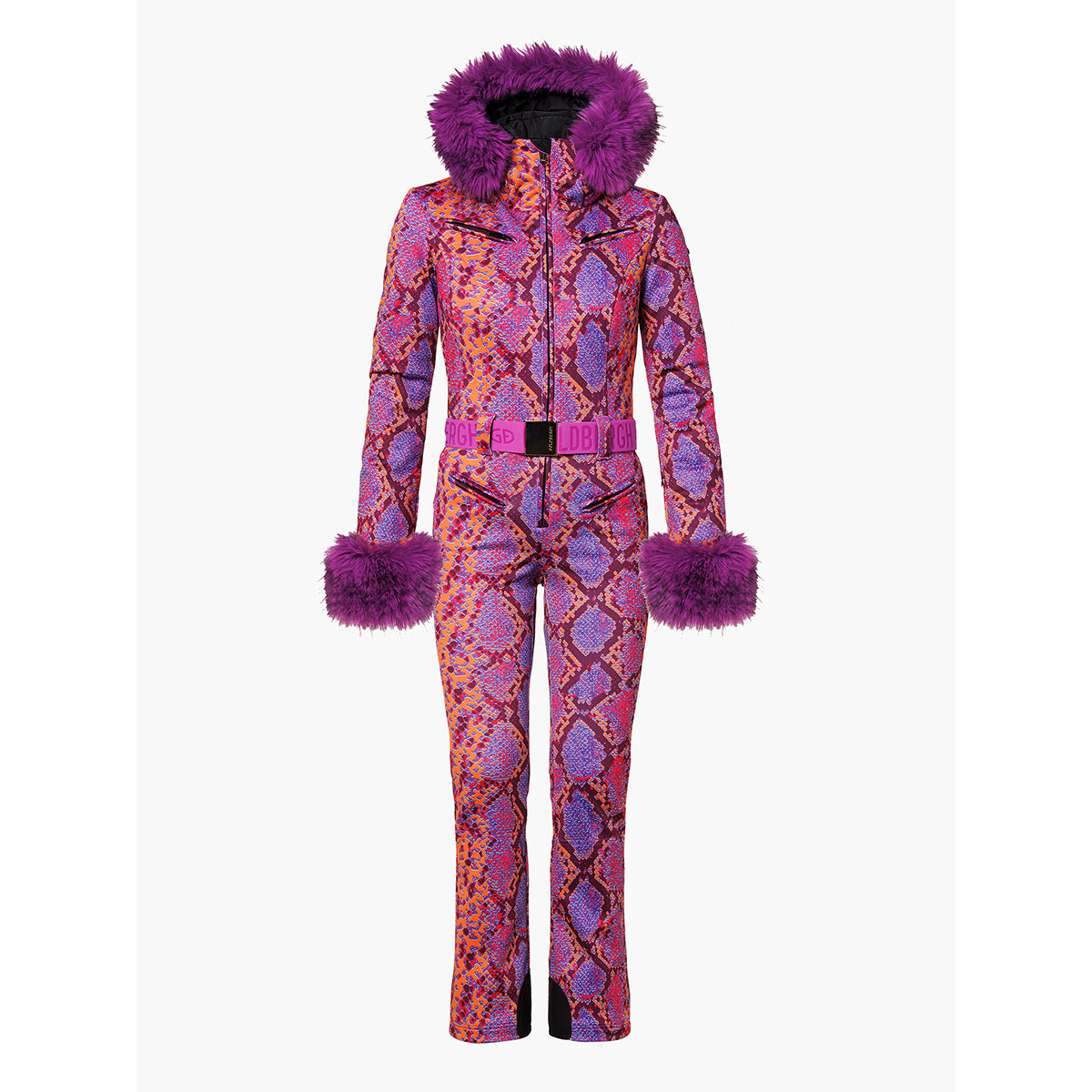 Skianzug mit Kapuze und durchgehendem Schlangenprint